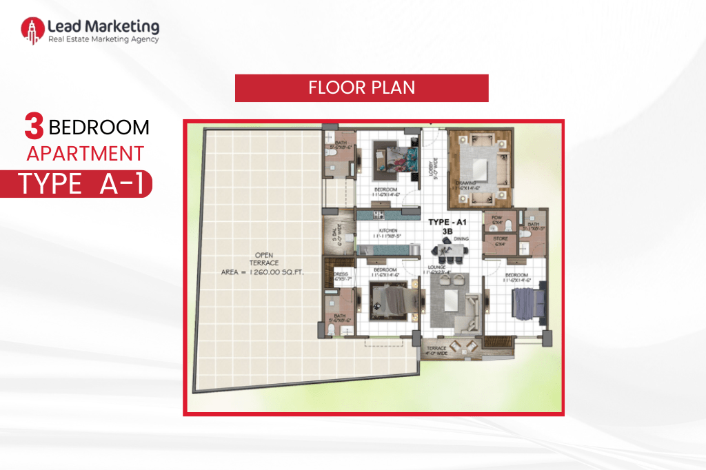 3-Bedroom Apartments for Sale at AA Residencia Karachi Type A-1: