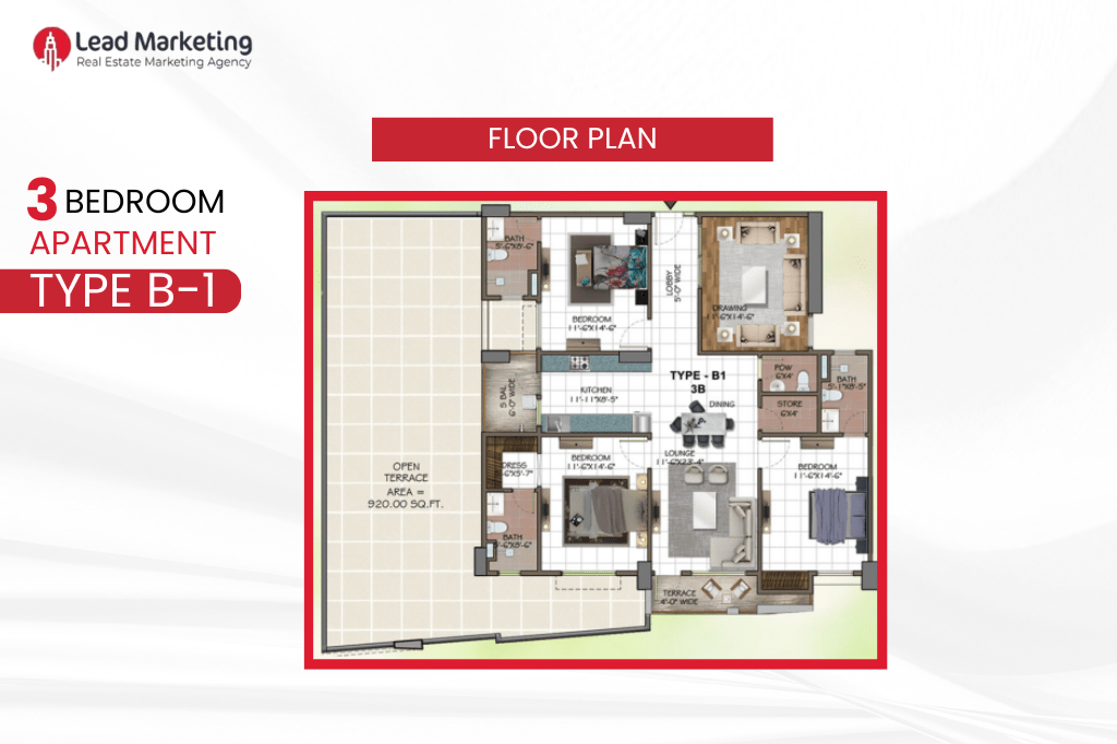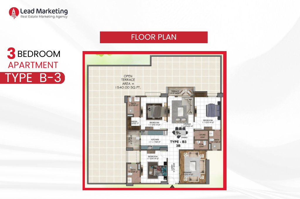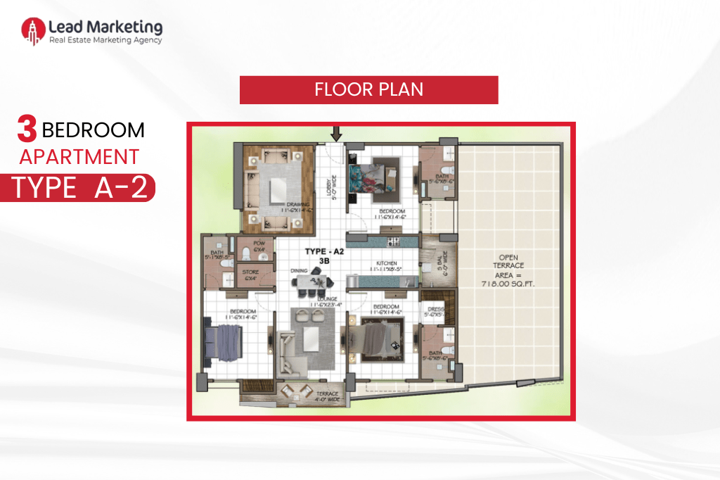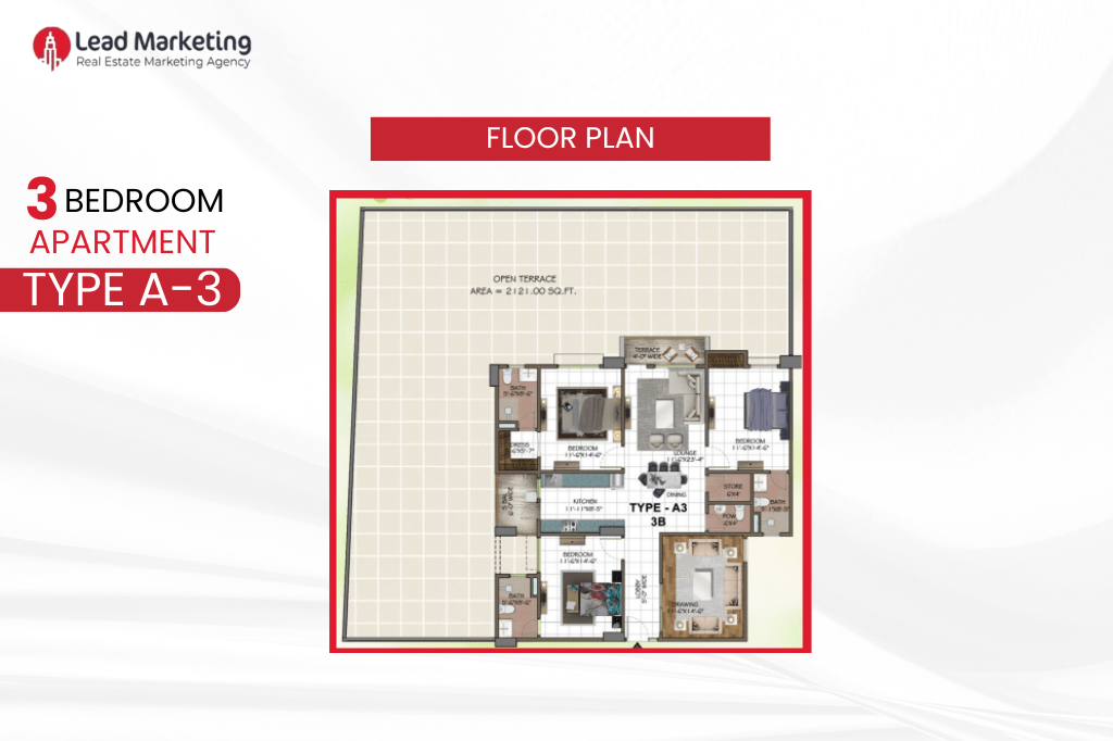 3-Bedroom Apartments for Sale at AA Residencia Karachi Type A-3: