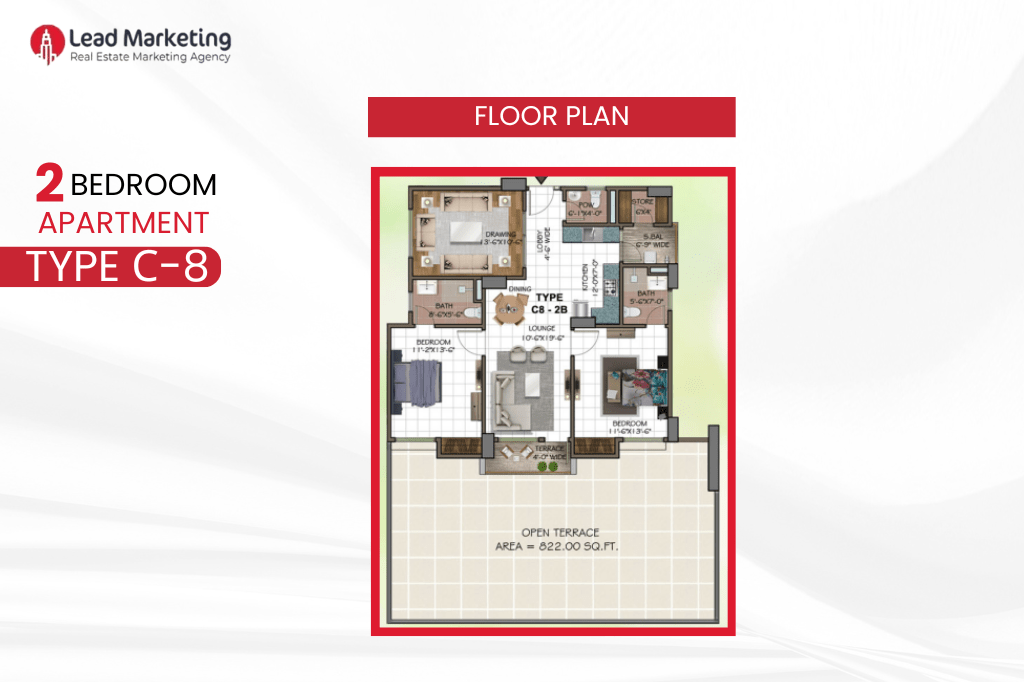 2-Bedroom Apartments for Sale at AA Residencia Karachi Type C-8: