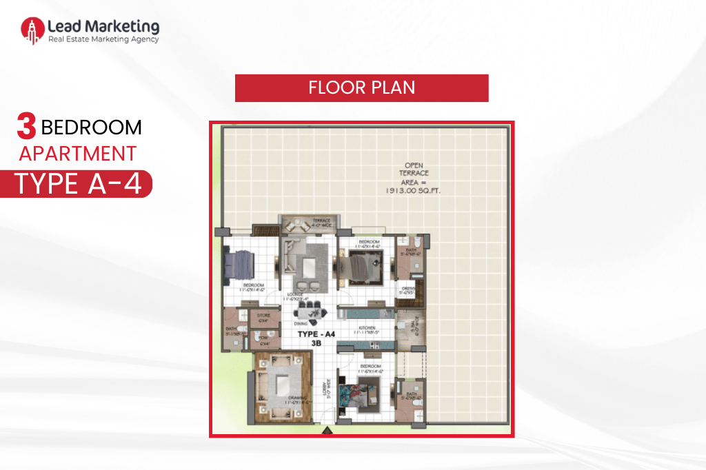3-Bedroom Apartments for Sale at AA Residencia Karachi Type A-4: