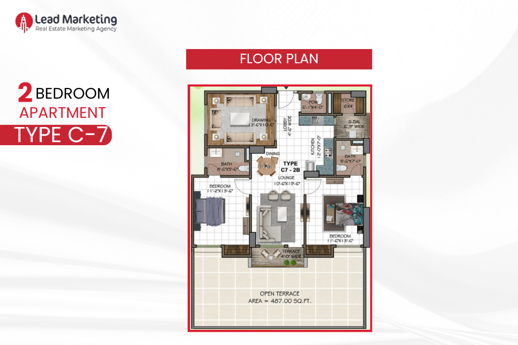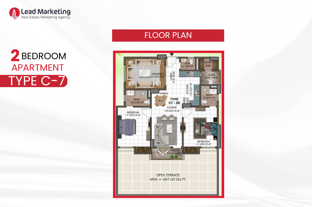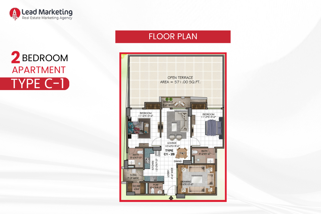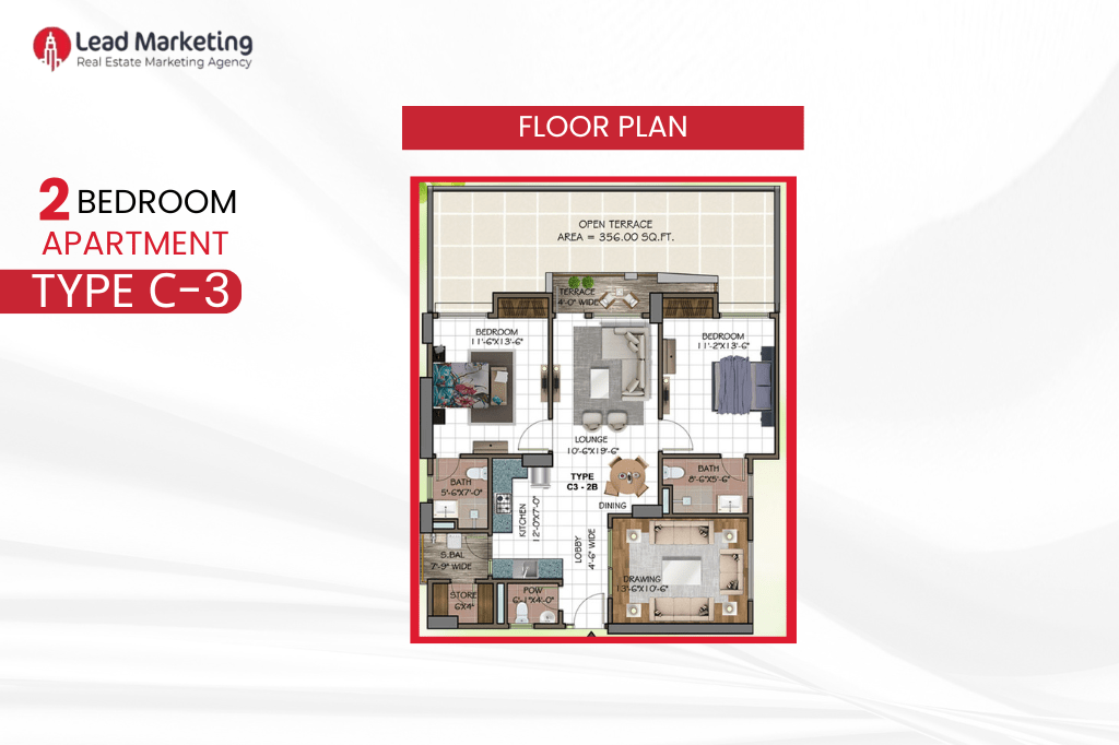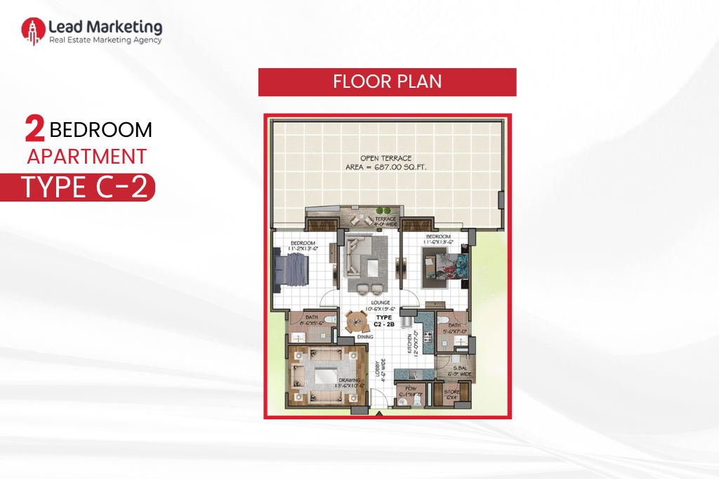 2-Bedroom Apartments for Sale at AA Residencia Karachi Type C-3: