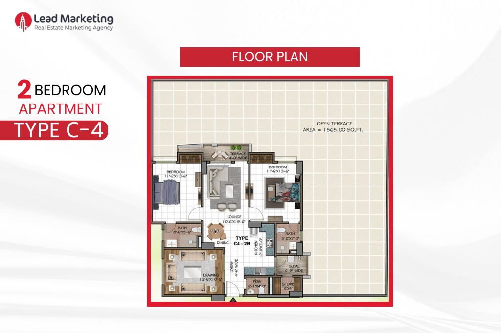 2-Bedroom Apartments for Sale at AA Residencia Karachi Type C-4: