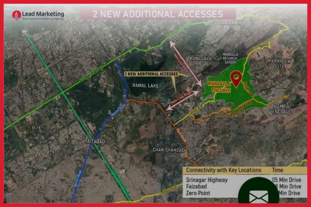 The location of Margalla Enclave is already in a prime location between Bani Gala, Park View City, and Bahria Enclave. Nevertheless, its accessibility in the urban network of Islamabad has been further increased by the newly opened access points.
